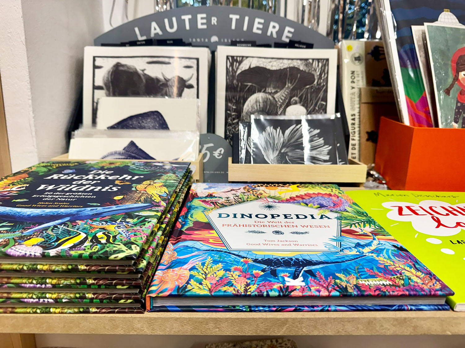 Dazwischen: Skizzenbücher, Notizhefte, Fotoalben – viele davon keine Massenware, sondern in der hauseigenen Werkstatt gefertigt. Jedes Stück mit dem leisen Versprechen, dass hier jemand Zeit investiert hat. Und Aufmerksamkeit.