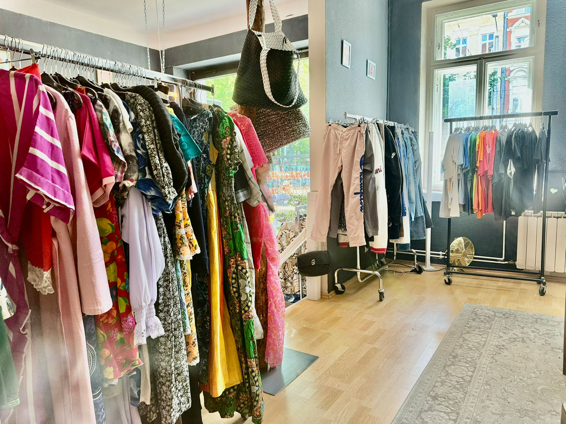 Klein aber geschmackvoll ist der neue Second-Hand-Store in der Südvorstadt eingerichtet. Auf zwei Ebenen findet ihr Kleiderstangen anstatt Wühltische, einen großen Spiegel und einen separaten Anprobebereich, in dem ihr euch zwischen euren neuen Lieblingen entscheiden dürfte.