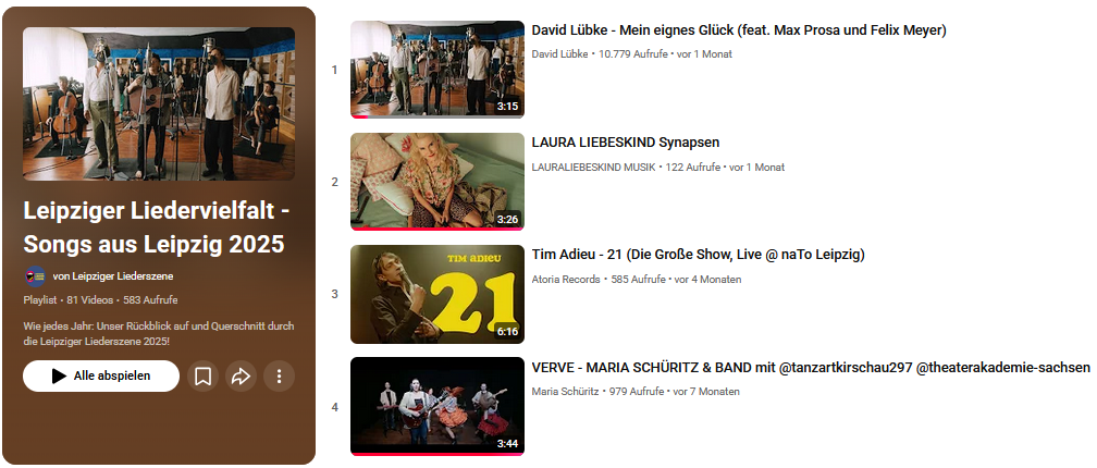 81 Leipziger Songs in einer YouTube-Playlist