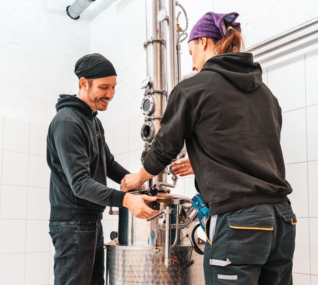 Was die beiden verbindet, ist die Neugier und die Liebe zum Detail. Peter, der Biochemie studierte und als Organisator Struktur gibt, und Enno, ausgebildeter Destillateur mit Forschergeist, vereinen Präzision mit Kreativität.
