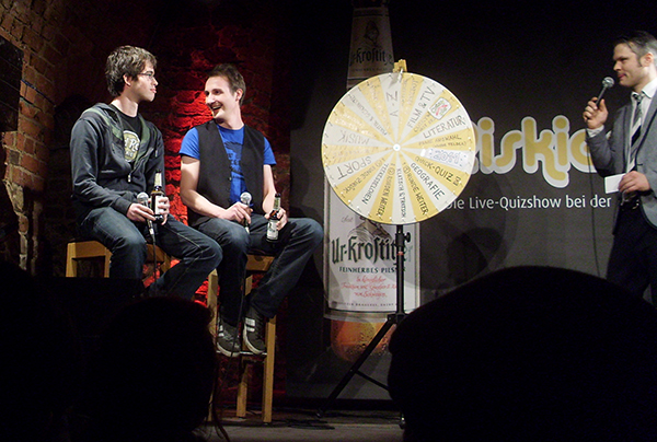 Lampenfieber ist hier fehl am Platz. Es ist schon manch hochmotiviertes Päarchen mit leeren Händen zurückgekehrt. Also: Jeden 2. Montag im Monat, Anne Gilzer anhimmeln, keine Angst vor der Bühne haben und bis zu 124 Flaschen Bier gewinnen.