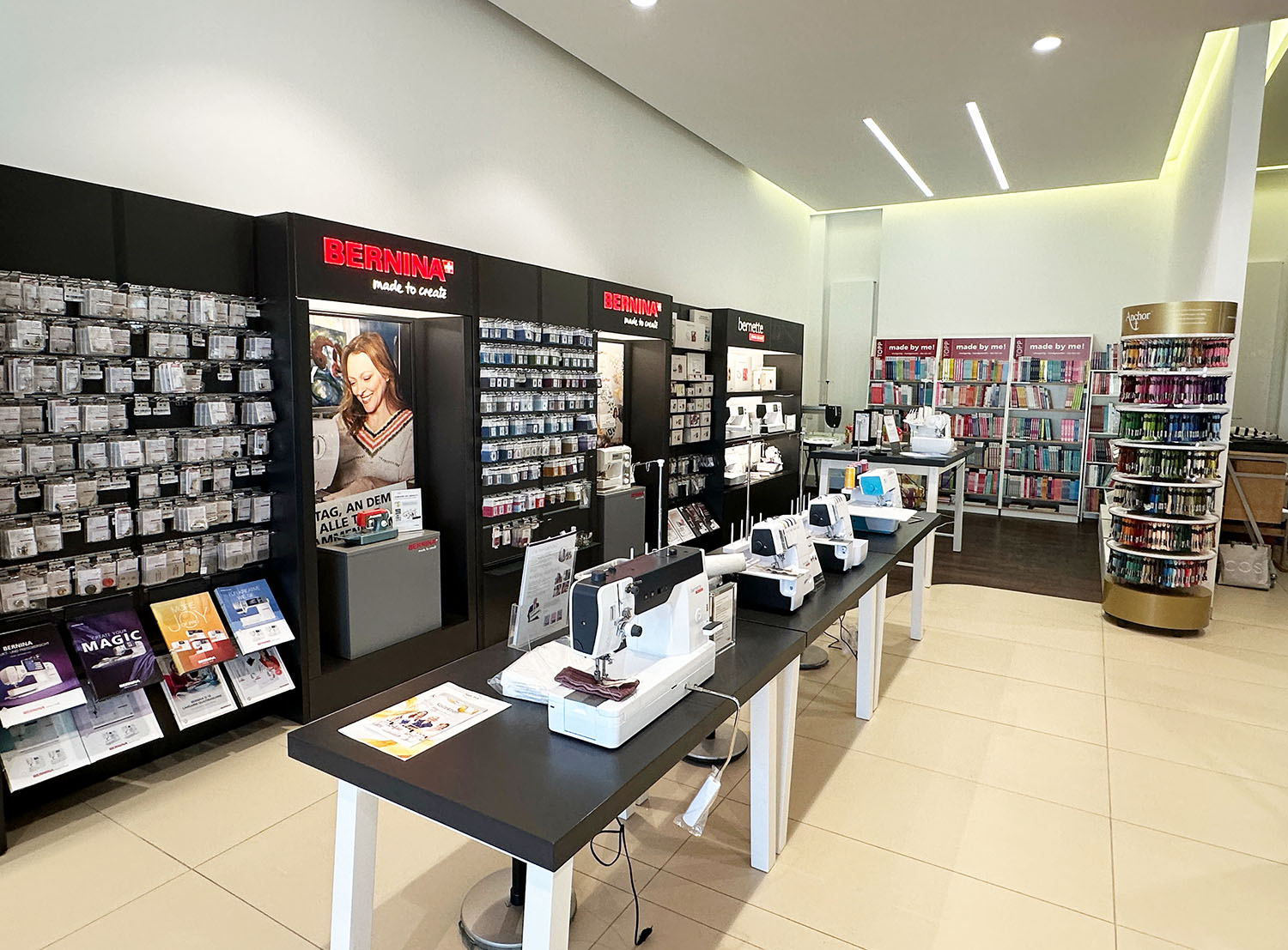 Ein besonderer Fokus liegt auf BERNINA-Nähmaschinen. Sie stehen nicht hinter Glas, sondern greifbar, erklärbar, erlebbar. Wer möchte, bekommt hier Beratung auf Augenhöhe – egal ob Anfänger:in oder erfahrene Näher:in
