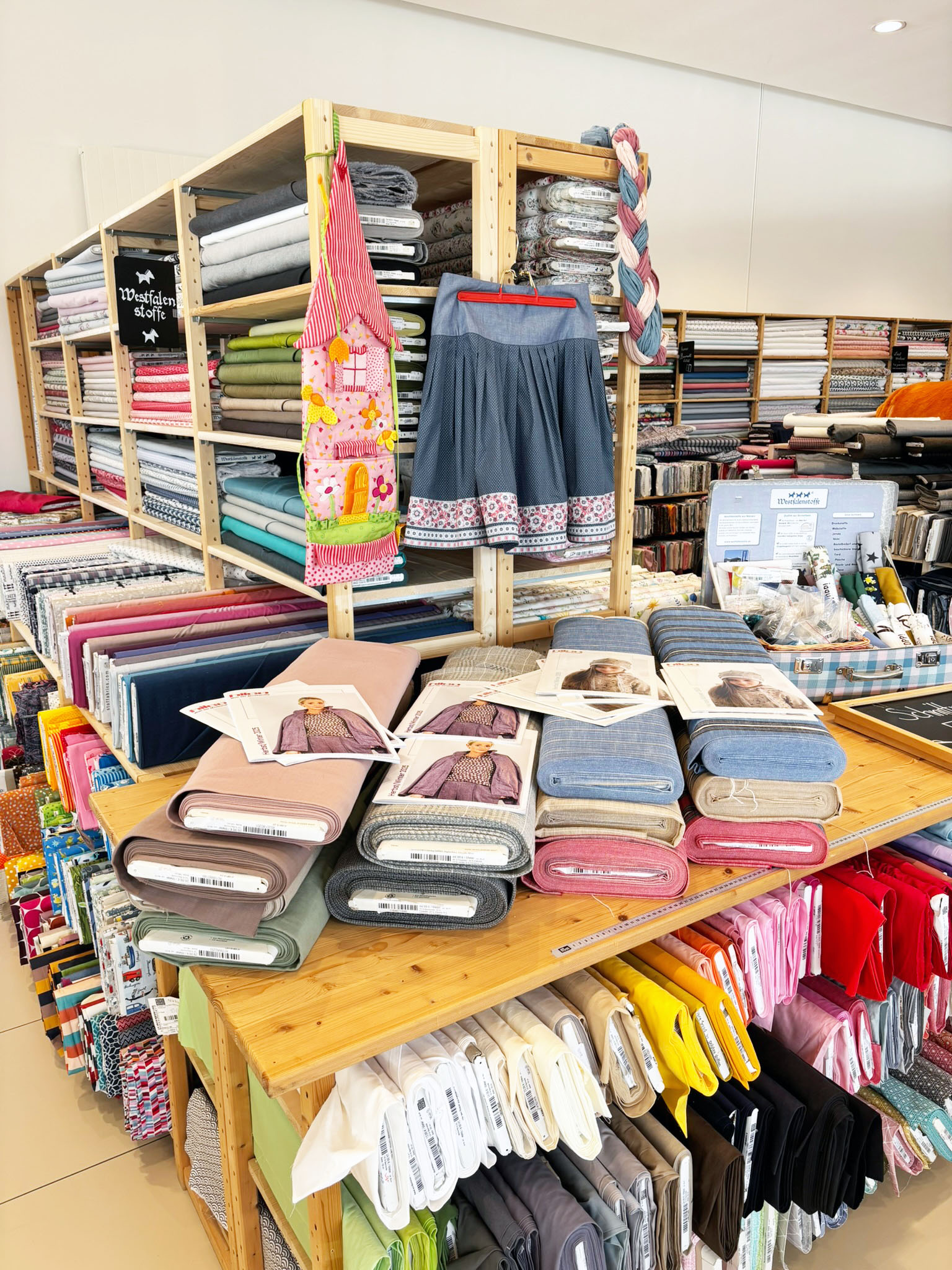 Es riecht nach Stoff. Nach Baumwolle, ein bisschen nach neuem Garn, nach Ideen, die noch keinen Namen haben. Das Licht fällt weich durch die großen Fenster, irgendwo surrt leise eine Nähmaschine – und plötzlich ist klar: Das hier ist kein Laden, den man schnell wieder verlässt.