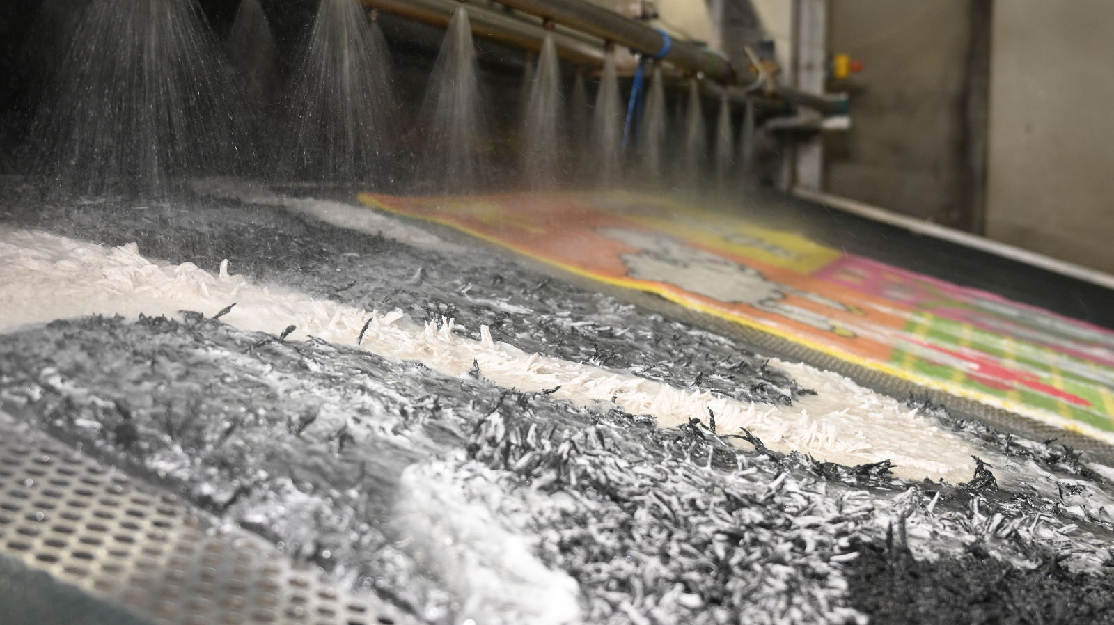 Im nächsten Schritt wird dein Teppich in einer Zentrifuge entwässert. Dieser Schleuderprozess sorgt dafür, dass die Restfeuchte des Teppichs auf ungefähr 30 bis 40 Prozent reduziert wird. Hierbei ist es von besonderer Wichtigkeit, dass dein Teppich nicht knickt.