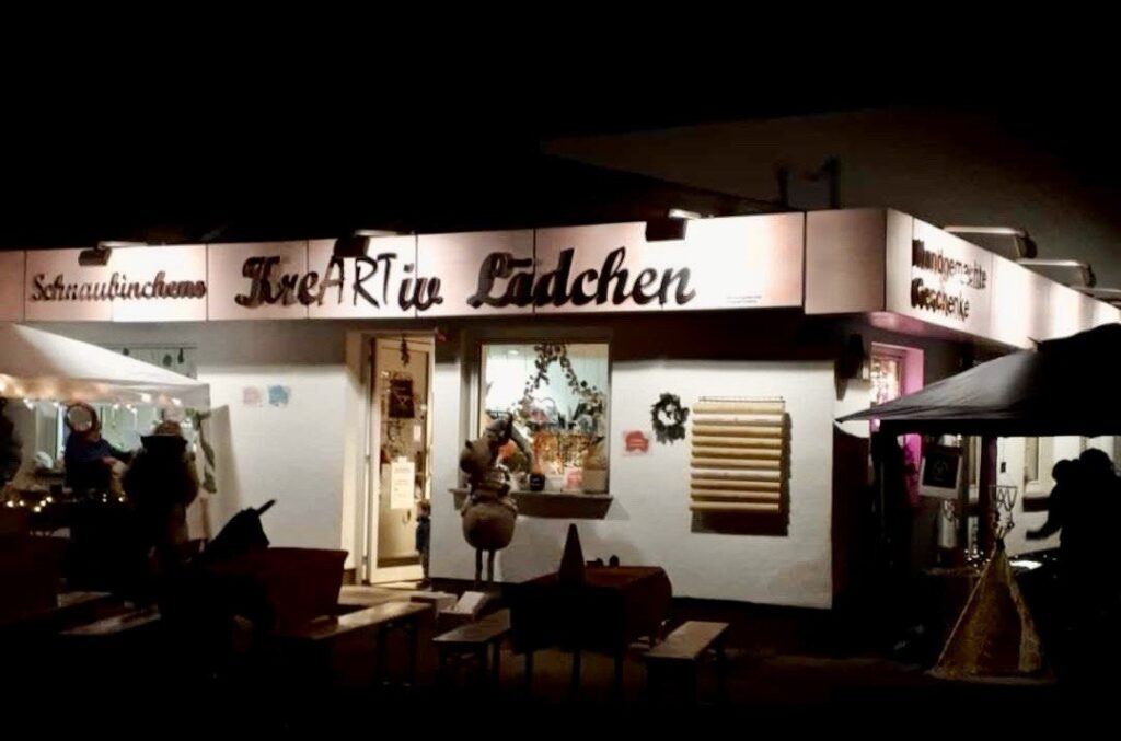 Was? Festlich geschmückte Marktbuden mit Weihnachtlichem